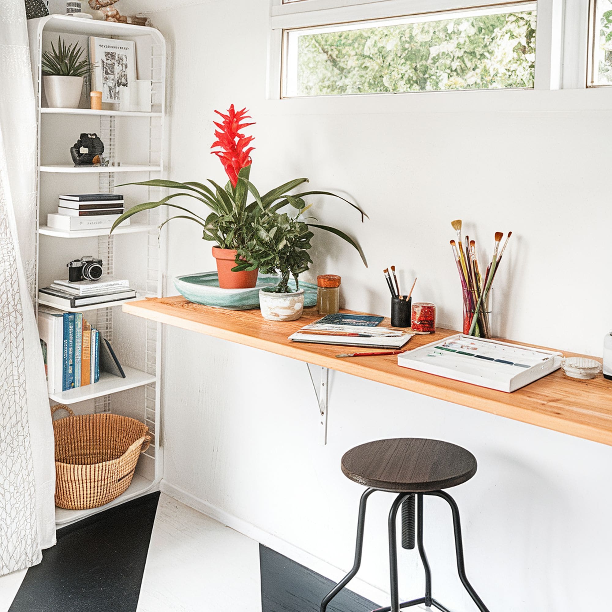 Making the most out of the available space is very important if you’re dealing with a small she shed. To maximize space use, it’s recommended to take a closer look at the walls and find some creative ways to store things. Integrate narrow floating shelves to take advantage of vertical space and store a wide range of books or decorations. Instead of a regular table that will take up too much space in the shed, go for a wall-mounted tabletop surface that’s more suitable for the compact style of the building. It’s all about figuring out ways to discover any potentially usable space in your she shed.