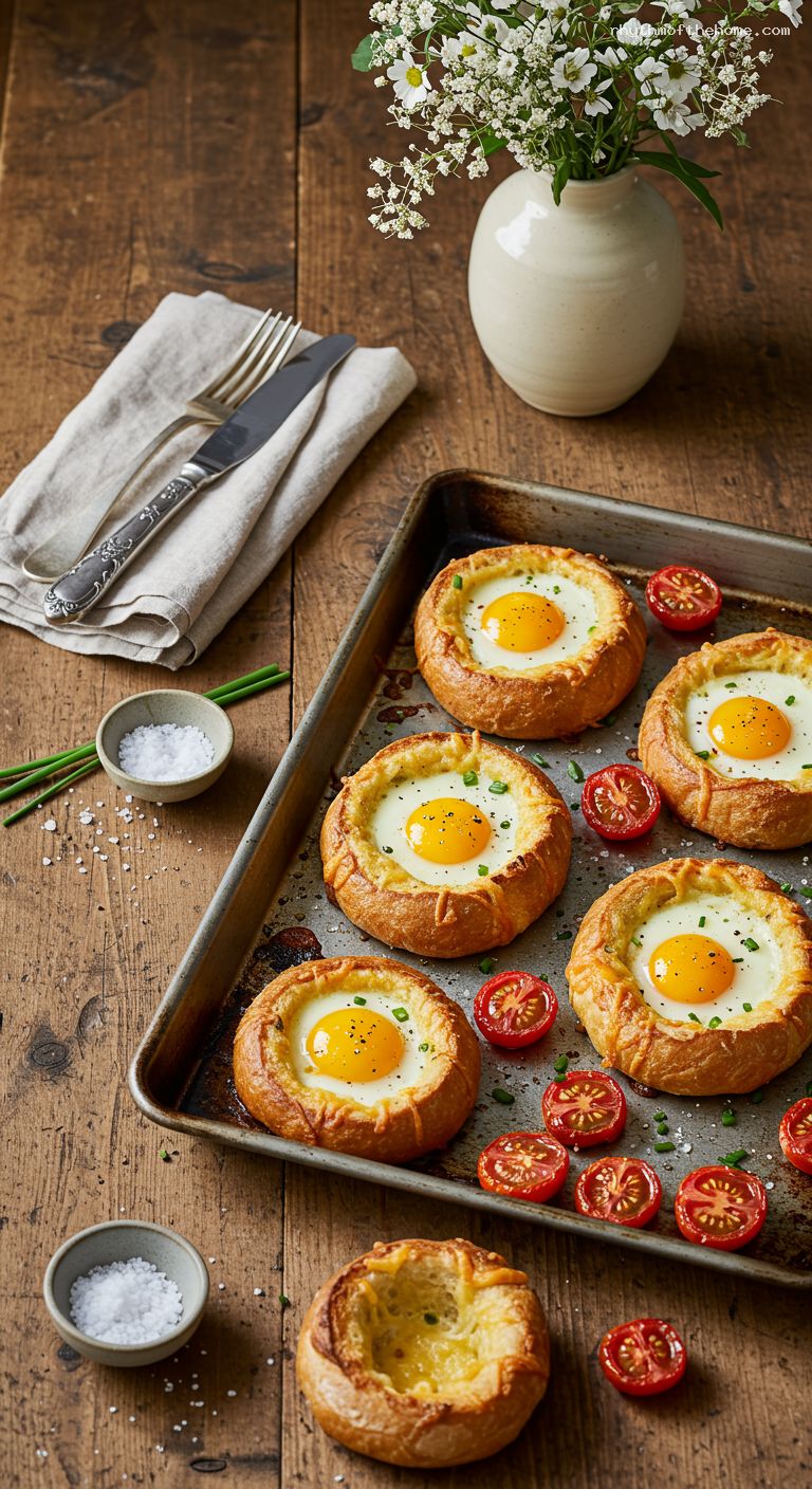 Best enjoyed immediately for crisp bread and soft yolks. If needed, refrigerate leftovers in an airtight container for up to 2 days. Reheat on a parchment-lined sheet at 325°F (165°C) for 8–10 minutes; yolks will be more set. For make-ahead ease, slice and butter the bread and halve the tomatoes up to 1 day in advance; refrigerate separately and assemble/bake just before serving.