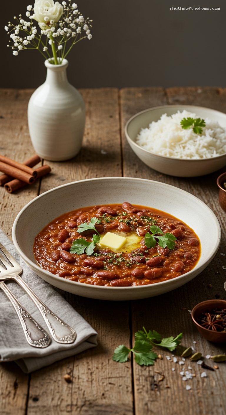 - Pantry: Dried red kidney beans (rajma), neutral oil, cumin seeds, bay leaves, black cardamom, green cardamom, cloves, cinnamon stick, ground coriander, turmeric, Kashmiri chili powder, garam masala, kasuri methi (dried fenugreek), salt, sugar (optional)