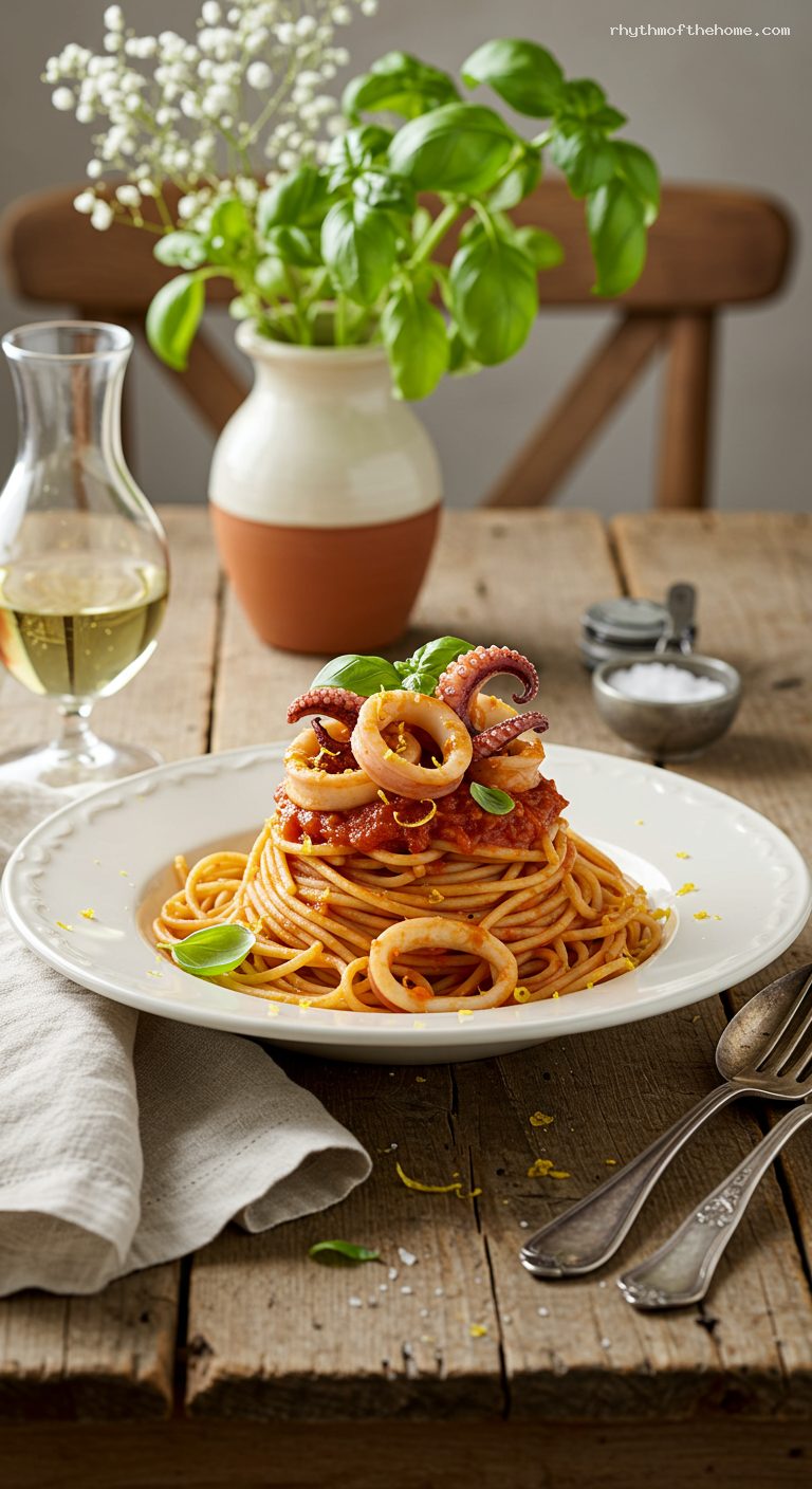 - Shrimp & Calamari Fra Diavolo: Swap half the calamari for peeled shrimp; add shrimp first (1–2 minutes), then calamari for the final 60–90 seconds.