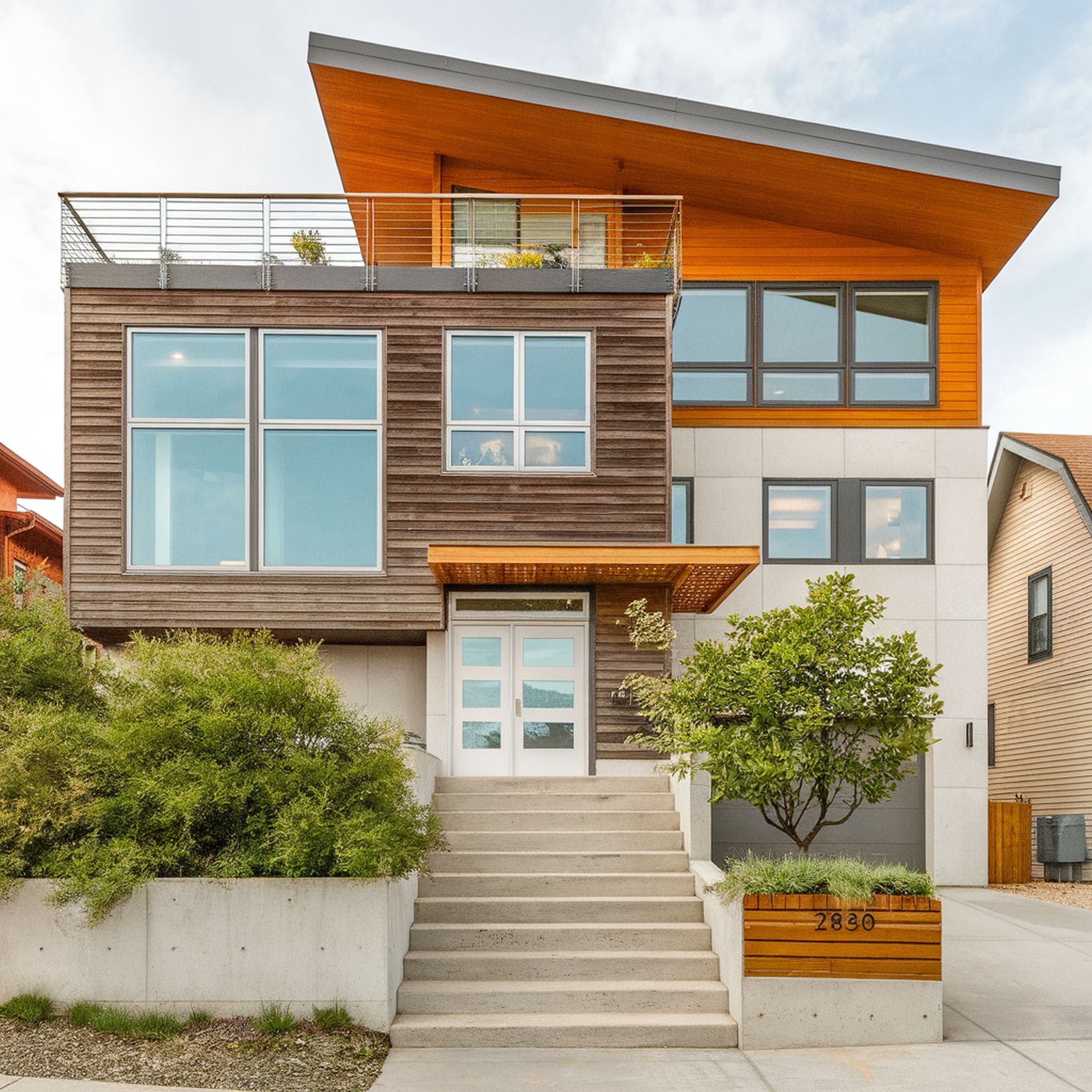 Looking to remodel a classic split-level home? Expanding the building vertically seems like the best solution because you don’t have to work around square footage limitations. Similar to this modern split-level house, you can try adding a rooftop deck that could be used as a relaxing spot for social gatherings. The best part is that you can enjoy a spectacular view of the surrounding area.