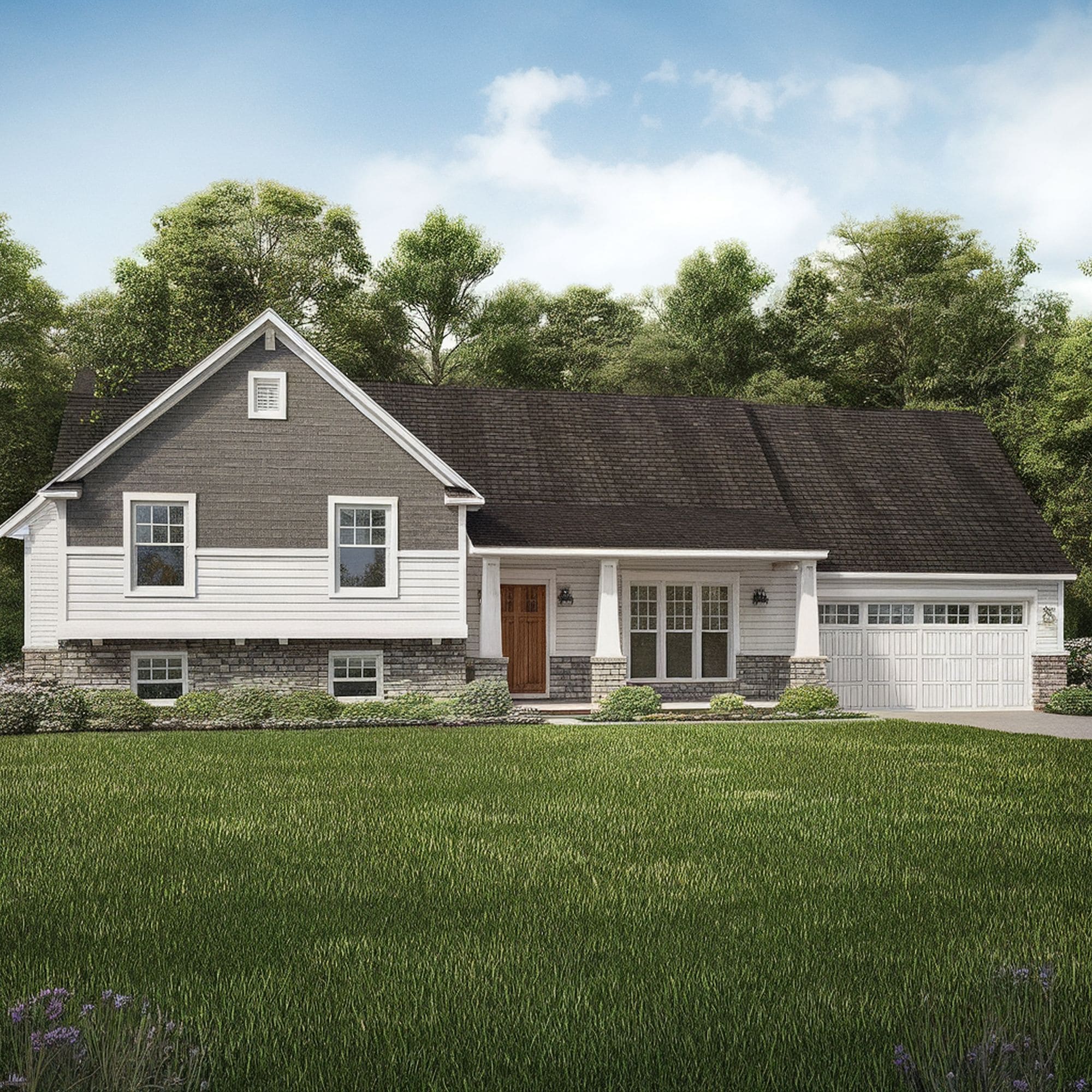 Split-level homes draw a lot of inspiration from ranch homes. That’s why they often feature a low-pitched roof that’s practical to prevent snow buildup and enhance the space for the upper level as much as possible.