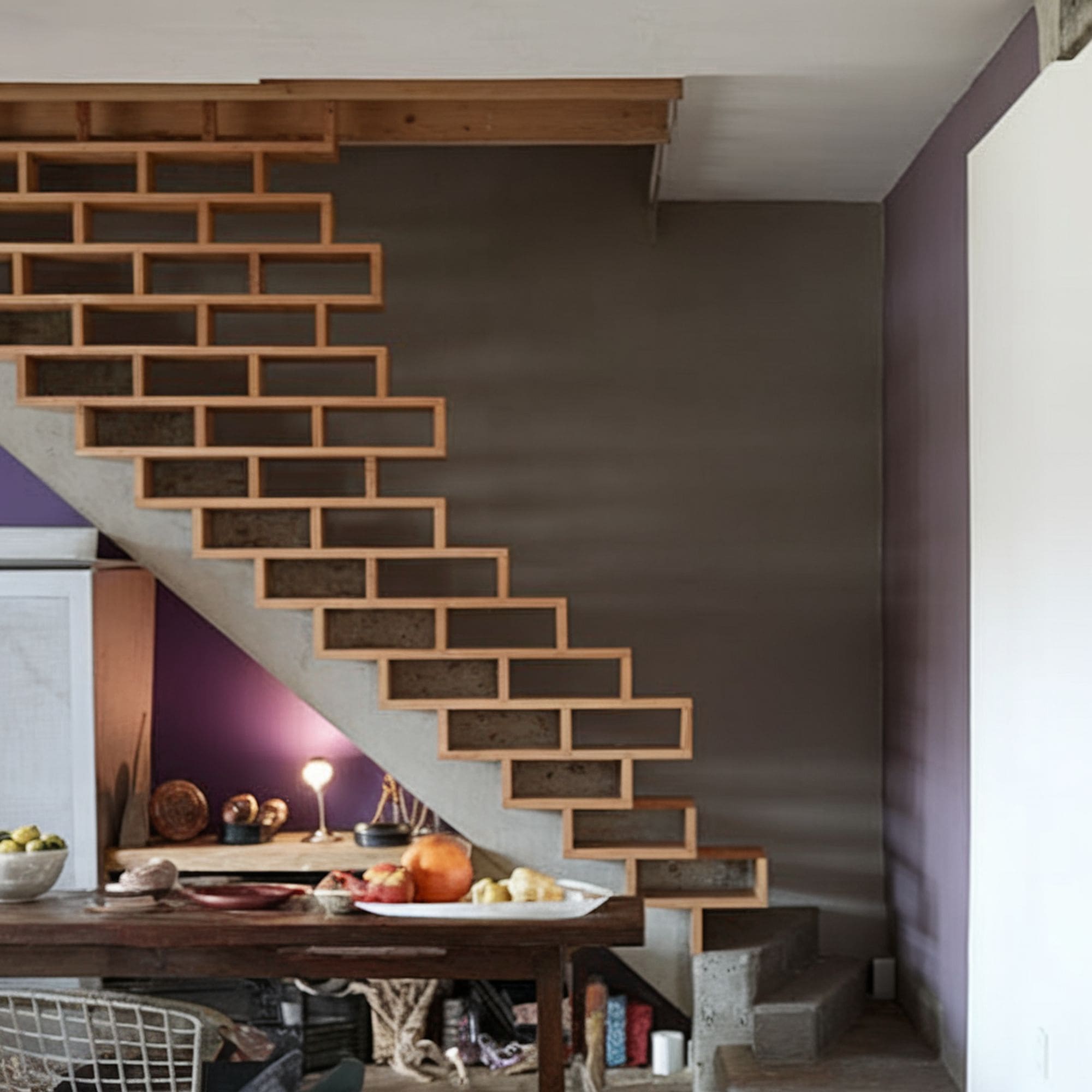 Most stairway railings feature regular straight spindles arranged in simple patterns but you don’t need to follow the norm if you prefer a unique look. Check out this modern take on traditional spindles that draws inspiration from woven threads.