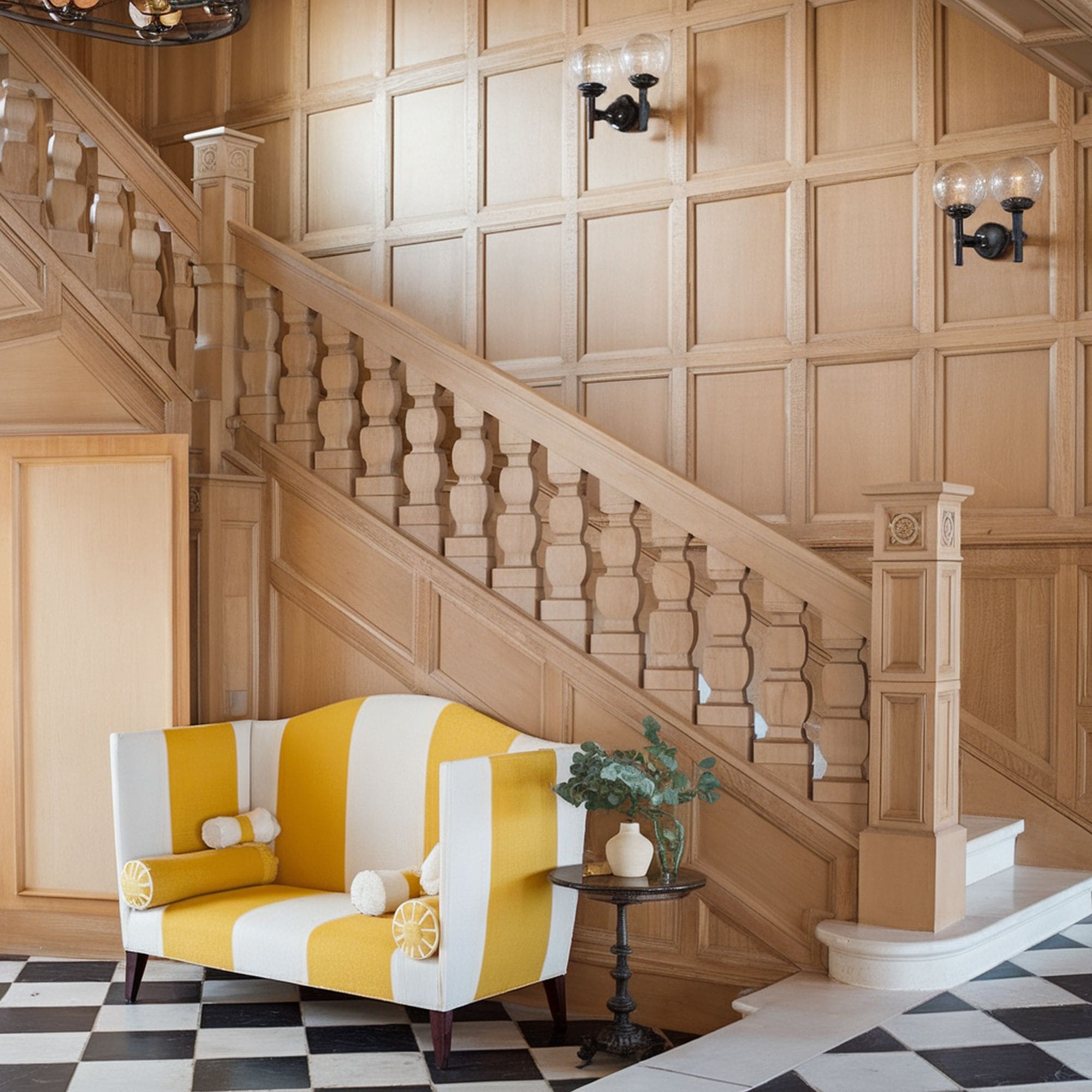 The superbly carved balusters and hefty detailed posts blend elegantly with the paneled wall that matches the appearance of all the elements of the staircase. This is the kind of inspirational idea to try in a grandiose space such as a Victorian-style home.