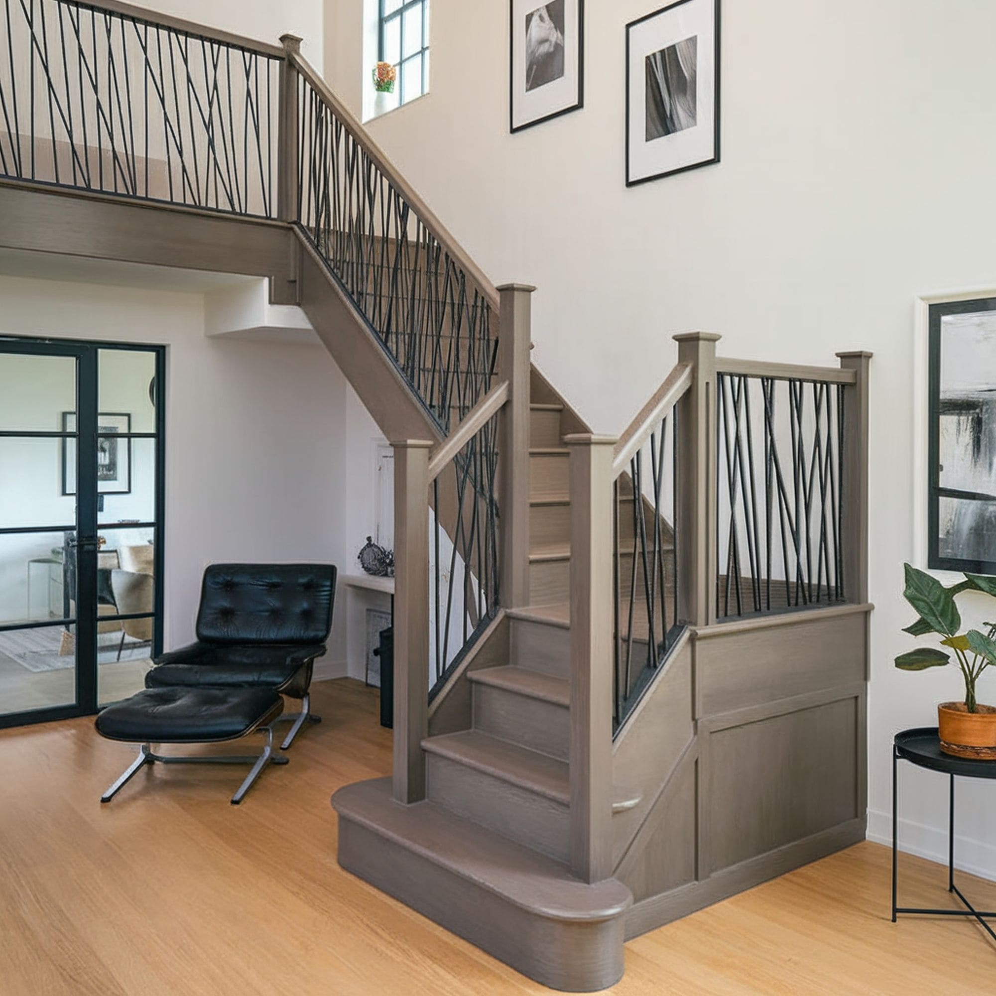 Many homeowners like the idea of making the stair railing stand out through color contrasts or bold designs. Others, however, prefer the opposite effect of integrating the railing with its surroundings as effectively as possible.