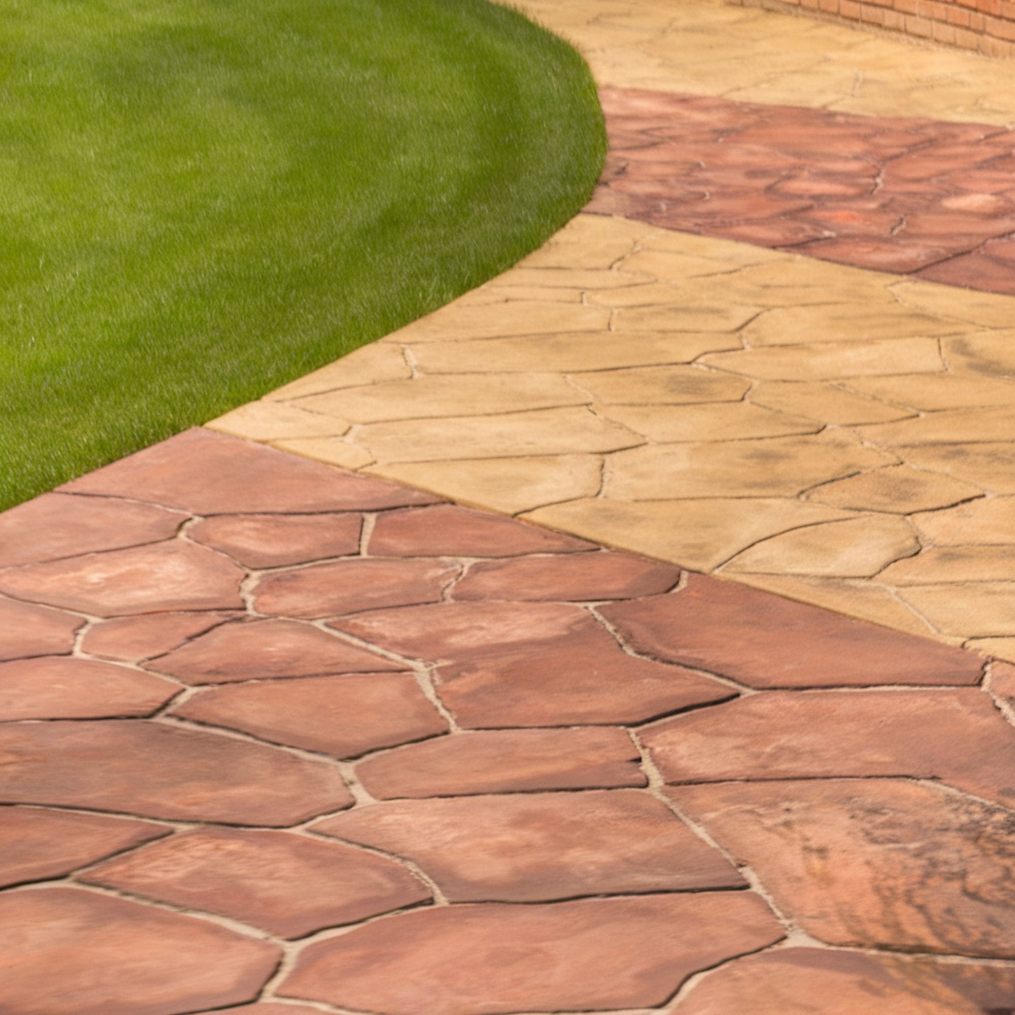 When you think of concrete, vibrant colors aren’t usually on your mind. With the right imprinted patterns and alternating colors, you can benefit from a bolder-looking patio that most people won’t even realize it’s based on boring old concrete. This example shows a fun pathway embellished in different shades of red and yellow but you can combine your favorite tones and add some more character to your own patio.