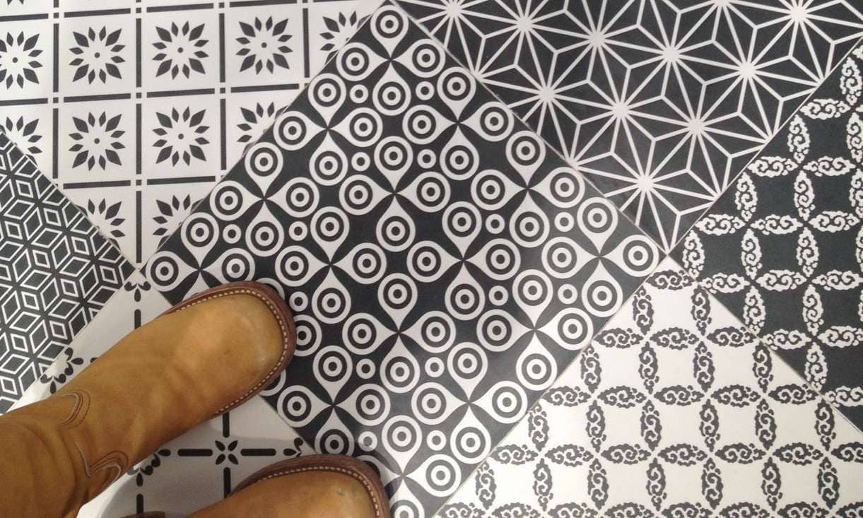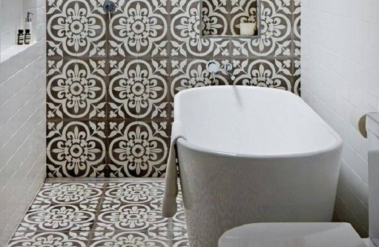The bathroom is often a great room for trying out interesting stenciled concrete floor ideas. Consider enhancing the visual impact of a stenciled floor by expanding the design to a feature wall. You can double the effect of a stenciled pattern in this way while also creating a more stylish look in a compact bathroom.
