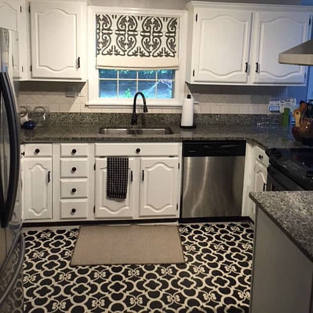 Black-and-white kitchens shouldn’t have to feel boring. You can make this space more lifeless by adding a matching stencil design on the concrete floor. Try using a Moroccan-inspired pattern that brings a sense of warmth to this utilitarian area without compromising on the elegance of the color scheme.