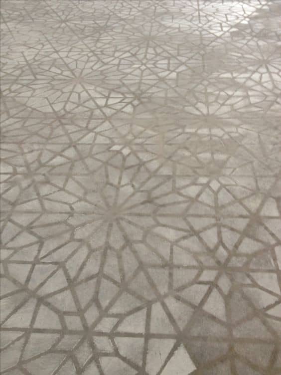 A nod to Moroccan design, this stenciled concrete floor makes use of beautiful star patterns. There’s no paint used but the complexity of the design speaks for itself when it comes to making a great impression. It’s a mesmerizing stencil pattern that brings a considerable global flair to any concrete floor.