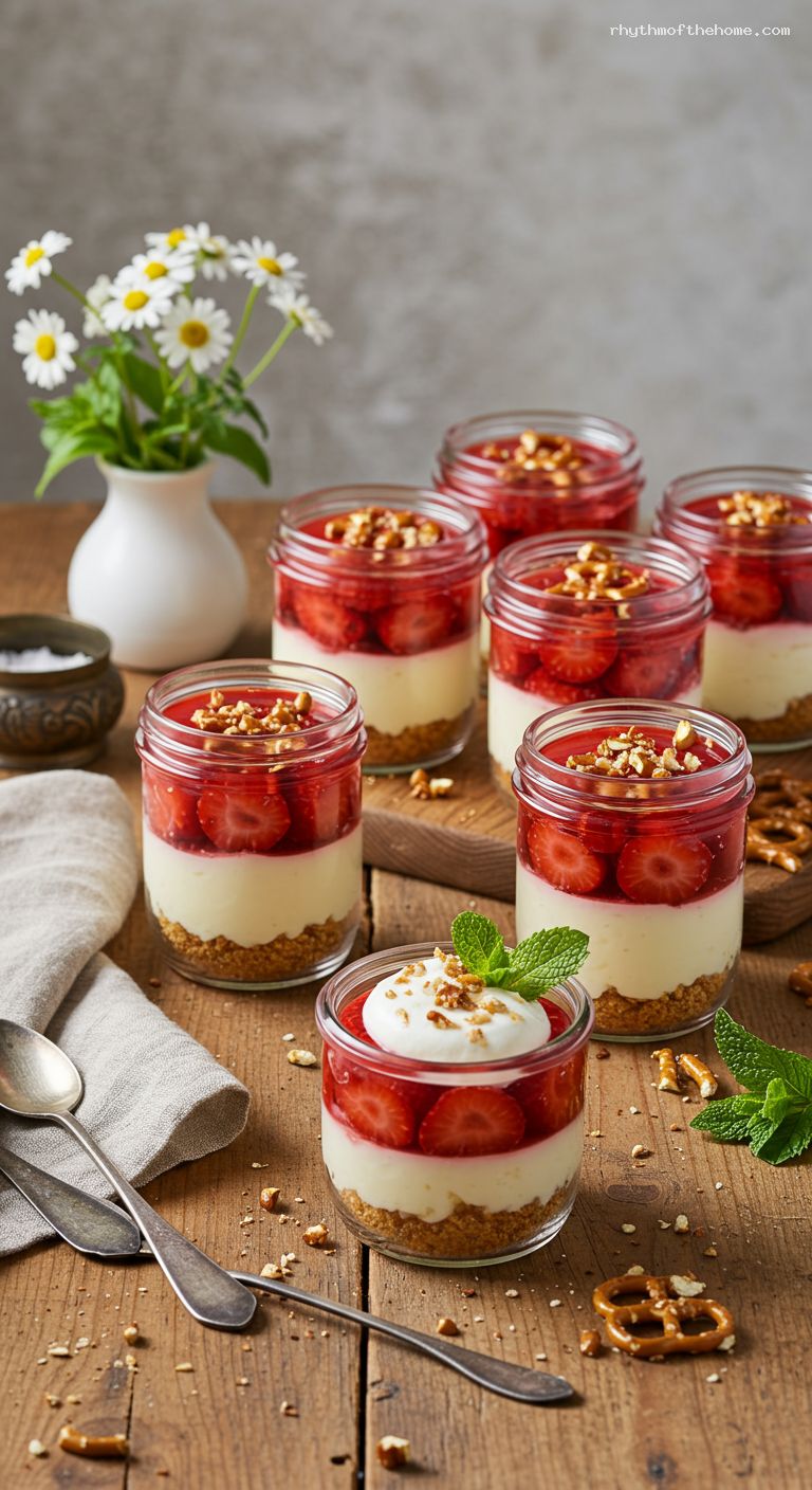 - Nostalgic strawberry pretzel salad, reimagined in tidy, portable jars.
