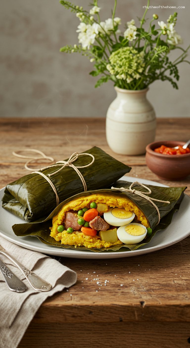 - Tolima-style with rice and chickpeas: Add 1/2 cup parboiled rice and 1/2 cup cooked chickpeas to the filling mix; increase steam time by 10–15 minutes.