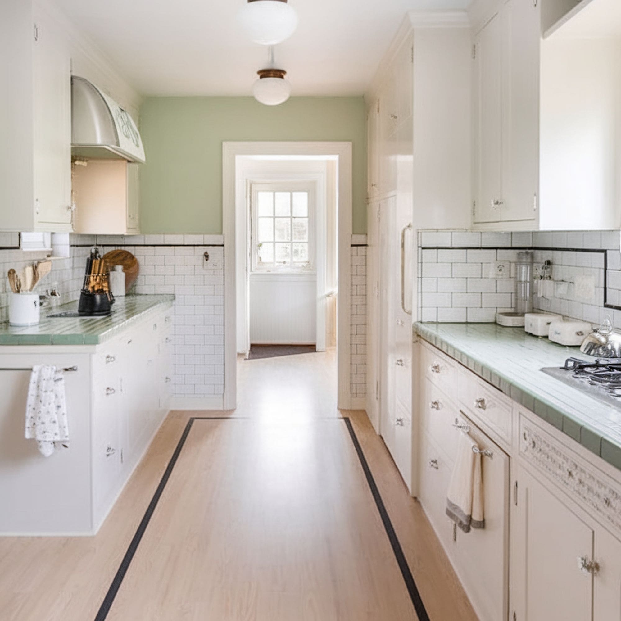Blending new and old kitchen design elements can be quite challenging unless you pay close attention to materials and decor pieces. Tile countertops are recommended for kitchens with a focus on aesthetics rather than pure utility. They can add vintage flair in a modern space that’s richly decorated. This kitchen combines antique accents and modern accessories in a stunning neutral-green color palette.