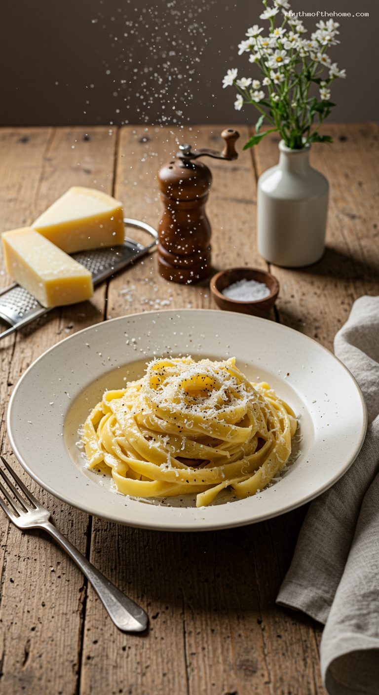 - Minimal ingredients, maximum flavor: just pasta, Pecorino Romano, black pepper, and starchy water.