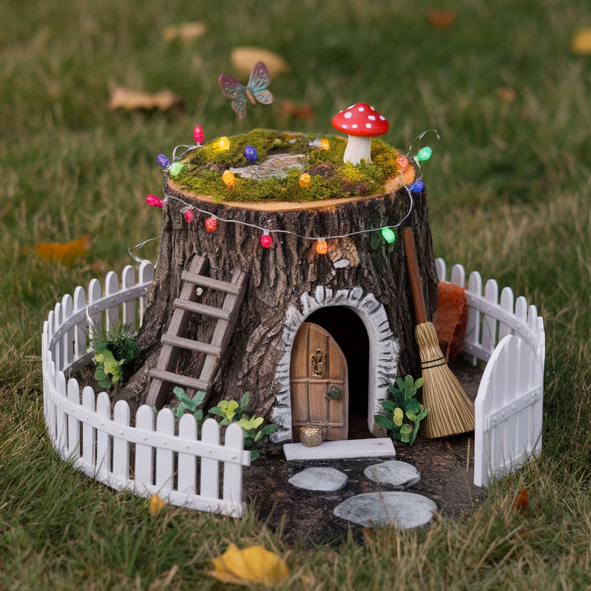 One of the best ideas of using your tree stumps is to turn them into a beautiful house for fairies. Little ones will absolutely love this idea and it also brings some positivity and a good vibe. In addition to this, if the stump is crafted with attention to detail, it can easily become the masterpiece of your garden. Look at the plethora of features in the picture above – the beautiful white ladder and the fence, the little broom, door, and even tiny mushrooms add so much vividness to your landscape!