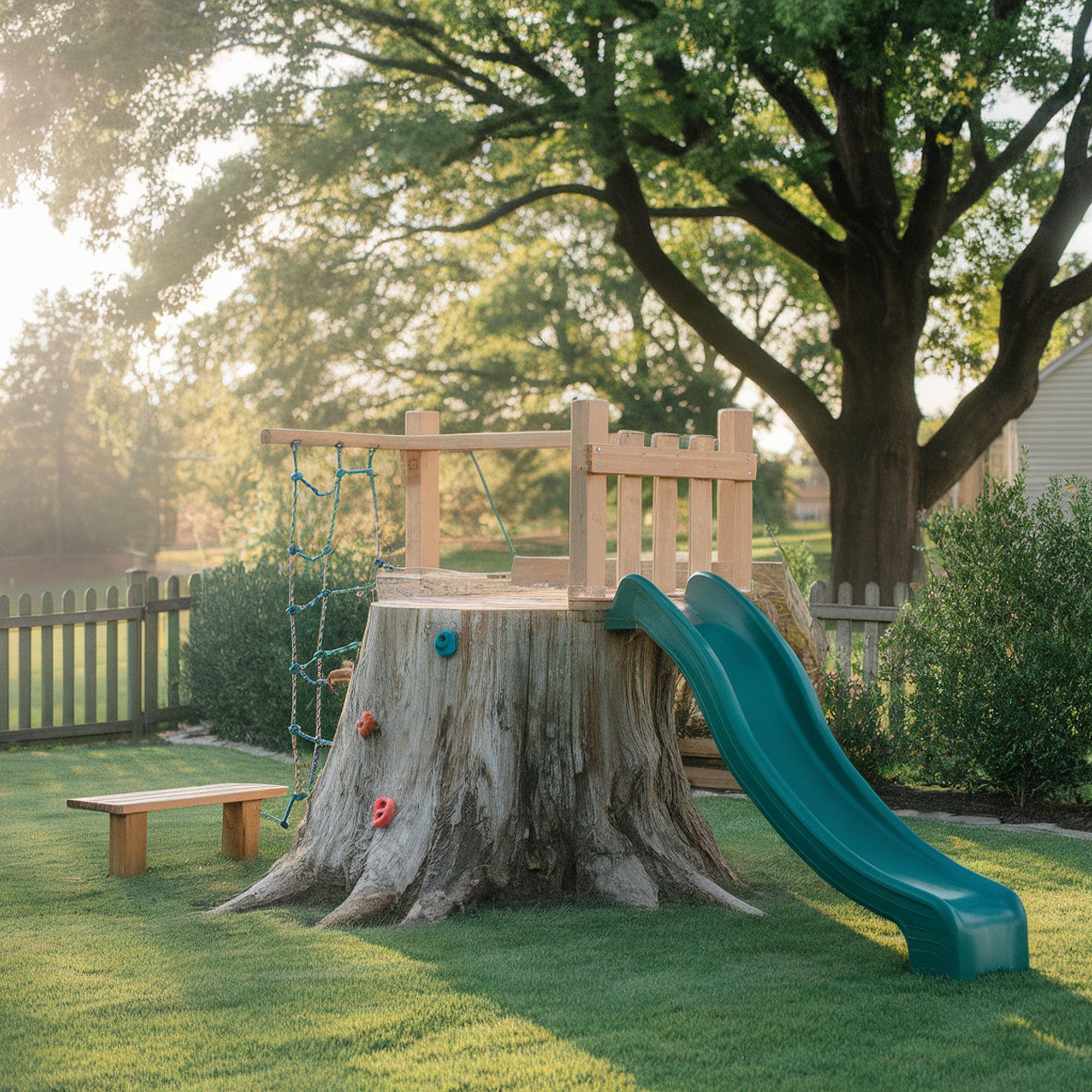 If you have kids, this idea will get you the award for the best parent of the year! Its creator managed to turn a stump into a complete playground with a climbing wall, a slide, and even a crow’s nest. The safety fence on top of the stump prevents accidents while your little one develops their motor skills in a natural and fun playground.
