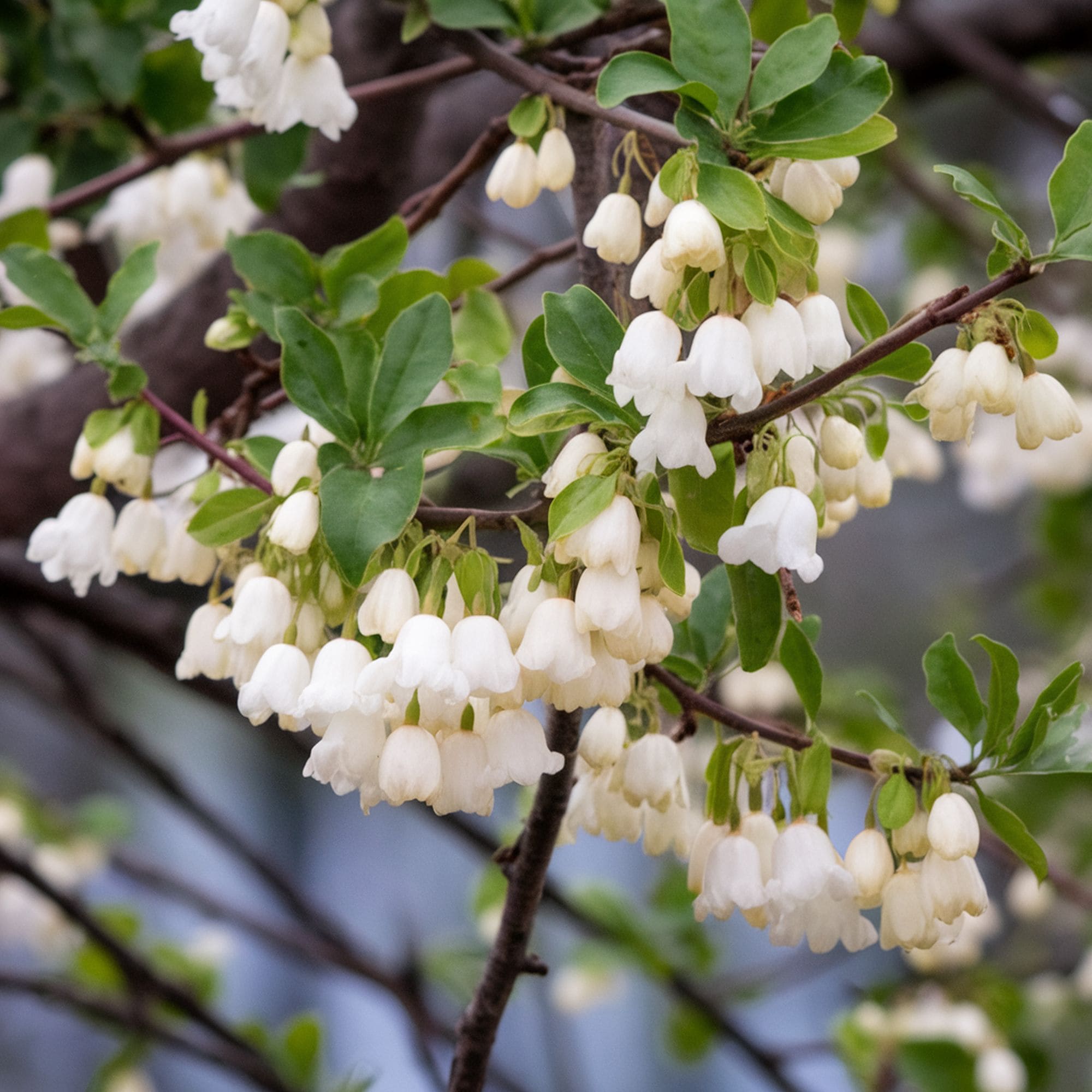 The crown of this tree doesn’t have a well-defined shape but the visual style can be improved by planting it together with rhododendrons and azaleas. To grow this tree or multi-trunked shrub, it’s recommended to set aside a full sun spot in the garden. Carolina silverbells can perform in partially shaded areas but they require rich soils with consistent moisture. The tree can be vulnerable to drought and heat while soil compaction can also have a negative impact.