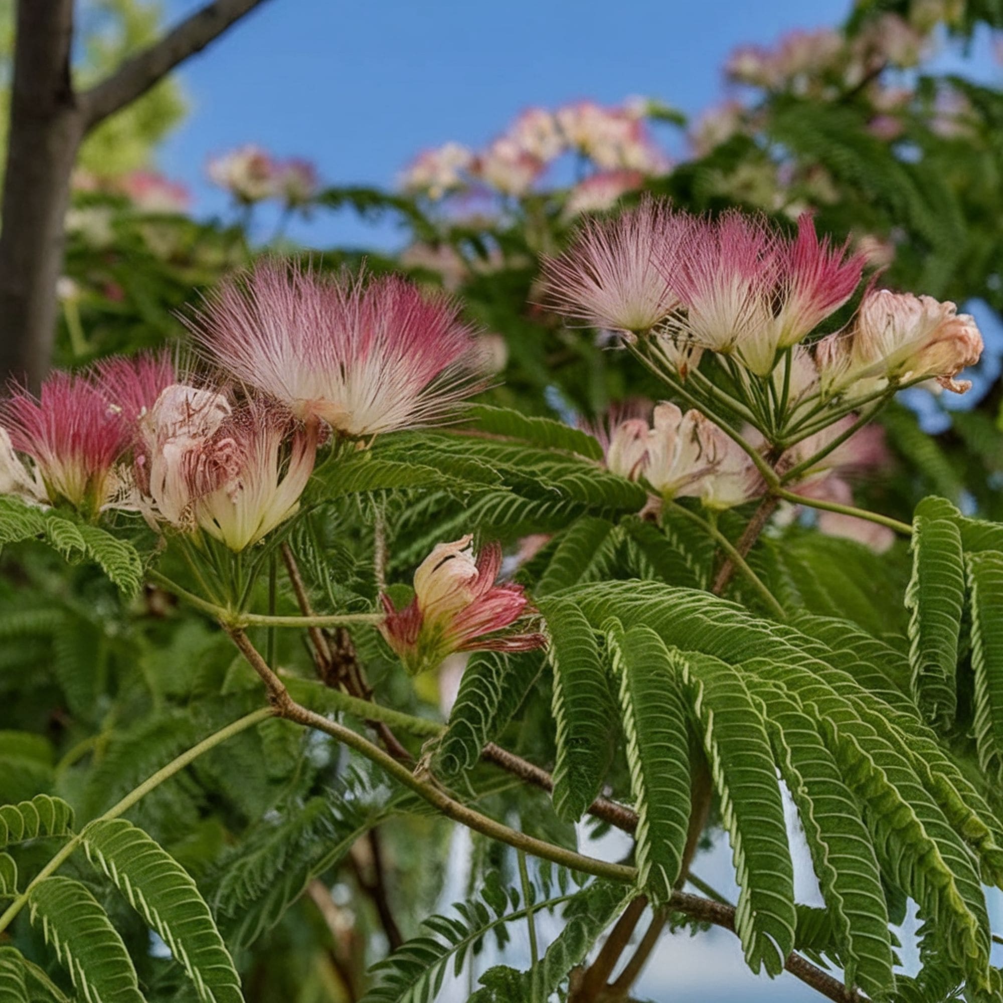 Despite the solid tolerance to drought and heat, mimosa performs ideally if you irrigate it in a consistent manner. It favors well-draining soil and can usually thrive in either full sun or part shade. The mimosa tree grows fast so you don’t have to wait a lot to enjoy the beautiful texture of its foliage and the unique thread-like flowers. It’s not surprising to find out that the mimosa tree is often called the silk tree. The maximum size of this tree should rarely reach more than 20 feet tall and wide.