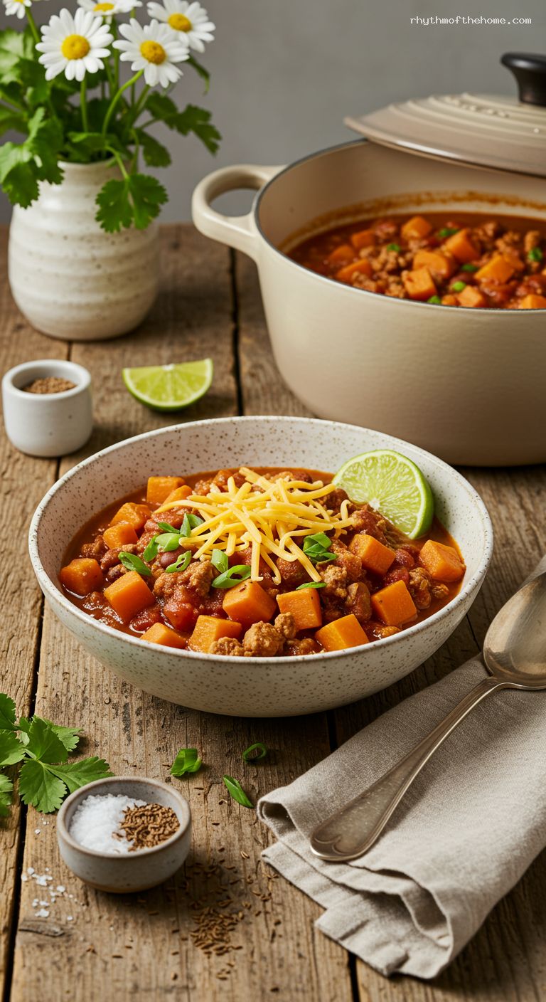 - Balanced comfort: smoky, gently spicy chili with sweet pops of tender sweet potato.