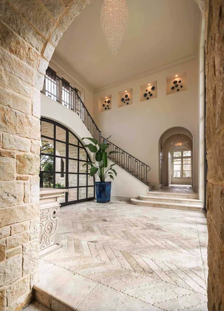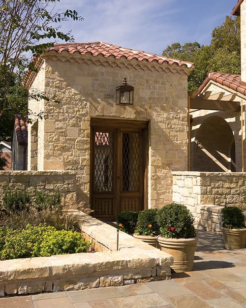 For an enhanced sense of grandeur, some Tuscan homes feature a traditional entry tower that sets the tone for the rest of the building. With the help of natural materials such as limestone and well-placed accents such as an antique lantern, guests will be more easily immersed in the aesthetic.
