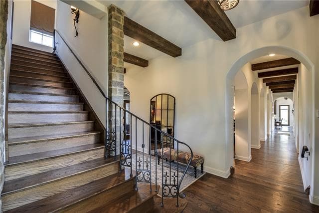 A classic interior when it comes to Tuscan architecture should typically involve wrought iron with some elegant embellishments. The railing on this stairway represents a good example. Other materials can contribute to the antique vibes.