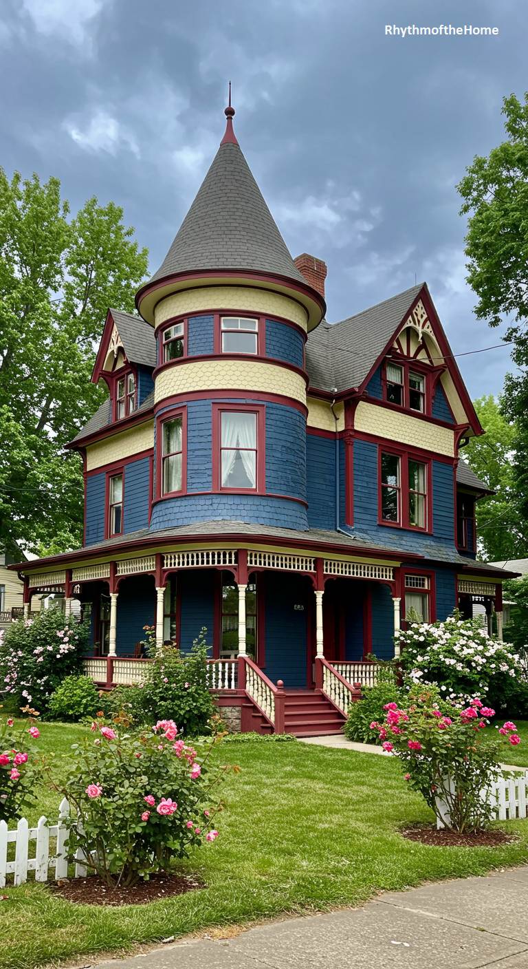 41. Classic Blue and Red Victorian Home