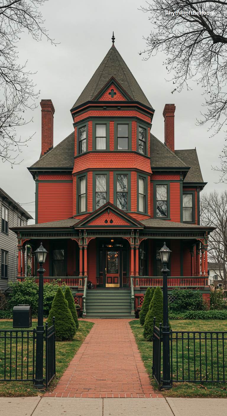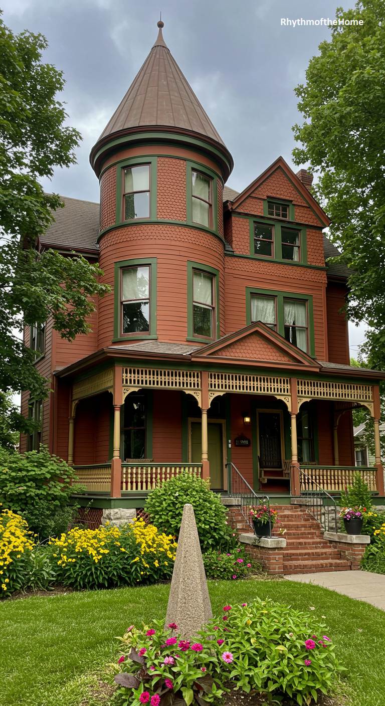 96. Terracotta and Green Queen Anne Victorian Home