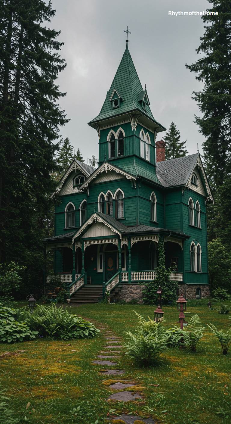 61. Emerald Green Forest Victorian Home