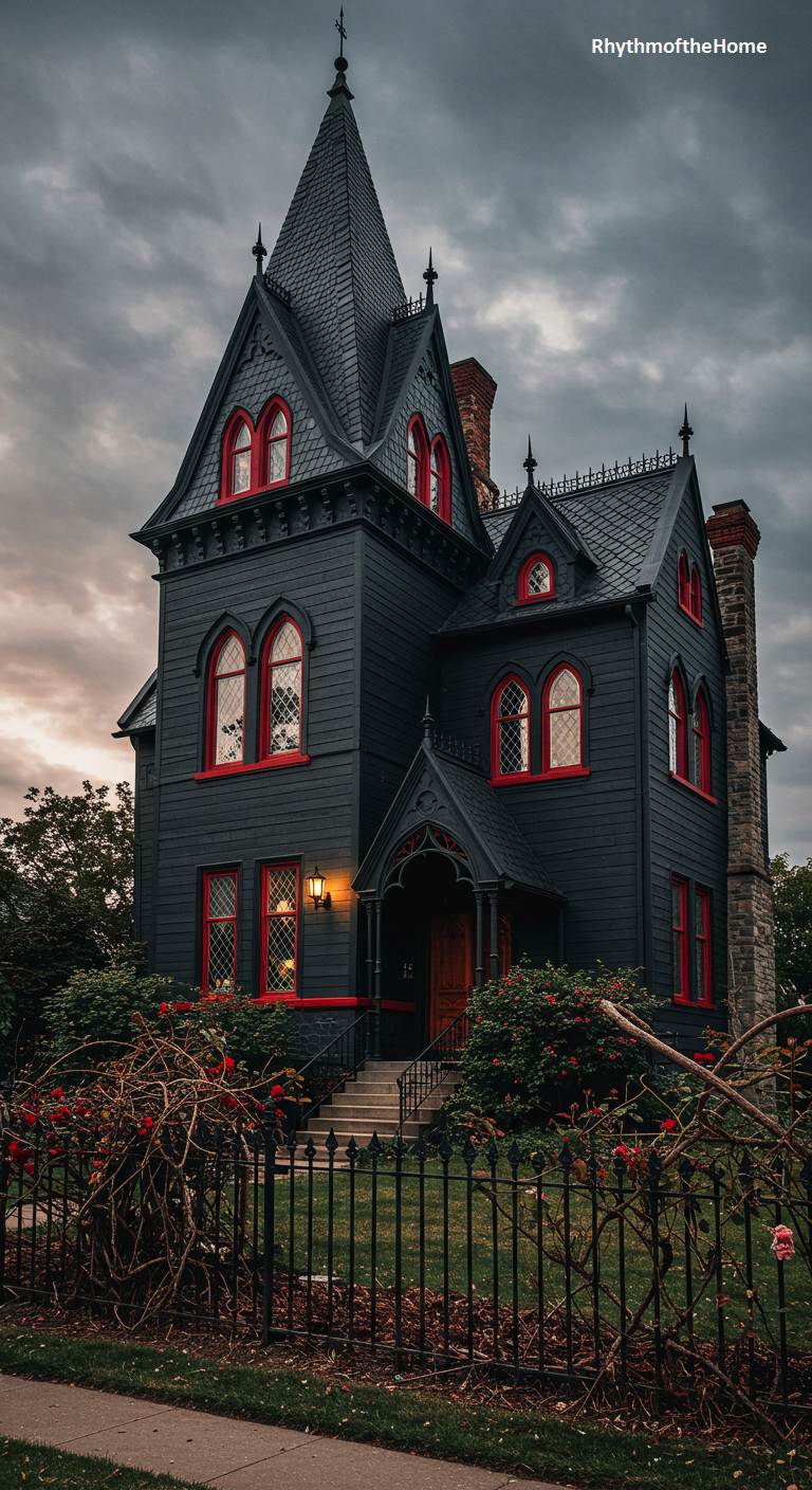 64. Black and Red Gothic Victorian Home