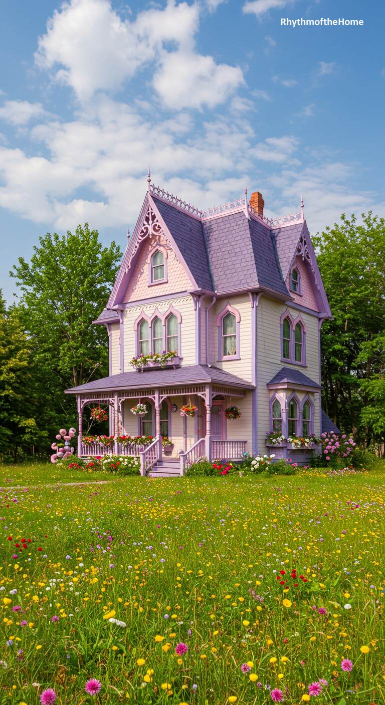 65. Lavender “Painted Lady” in a Wildflower Meadow Victorian Home
