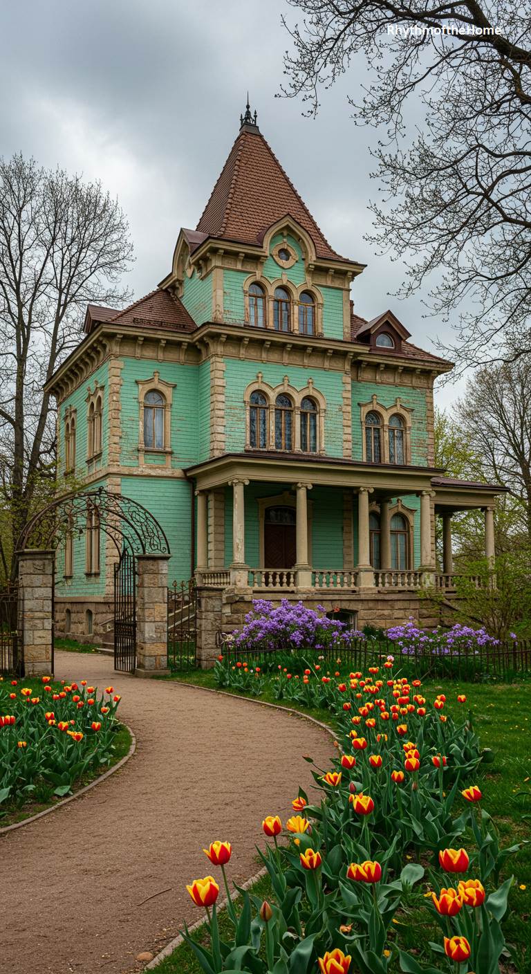 95. Springtime Tulip Garden Victorian Home