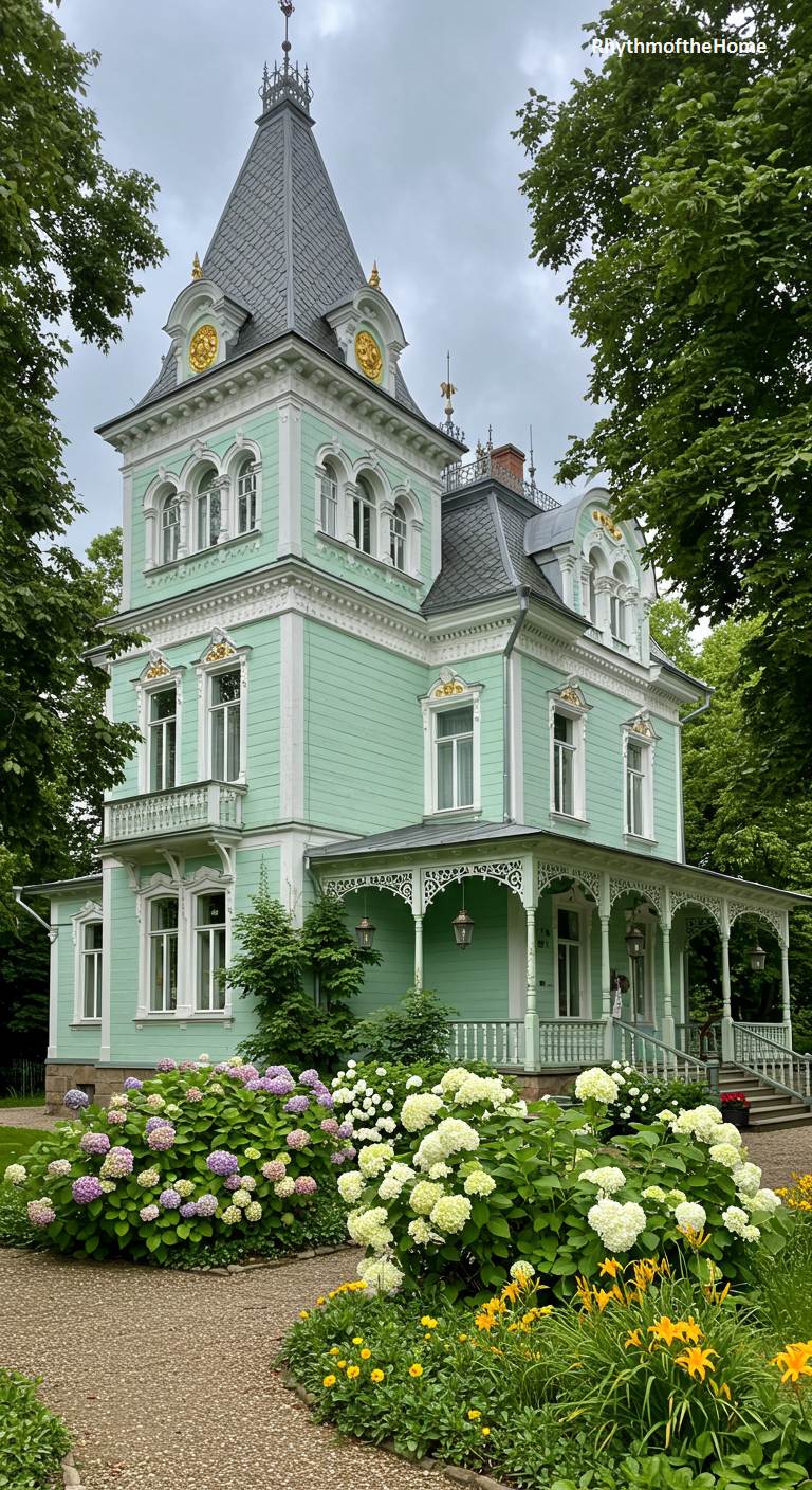 83. Elegant Mint Green Villa Victorian Home