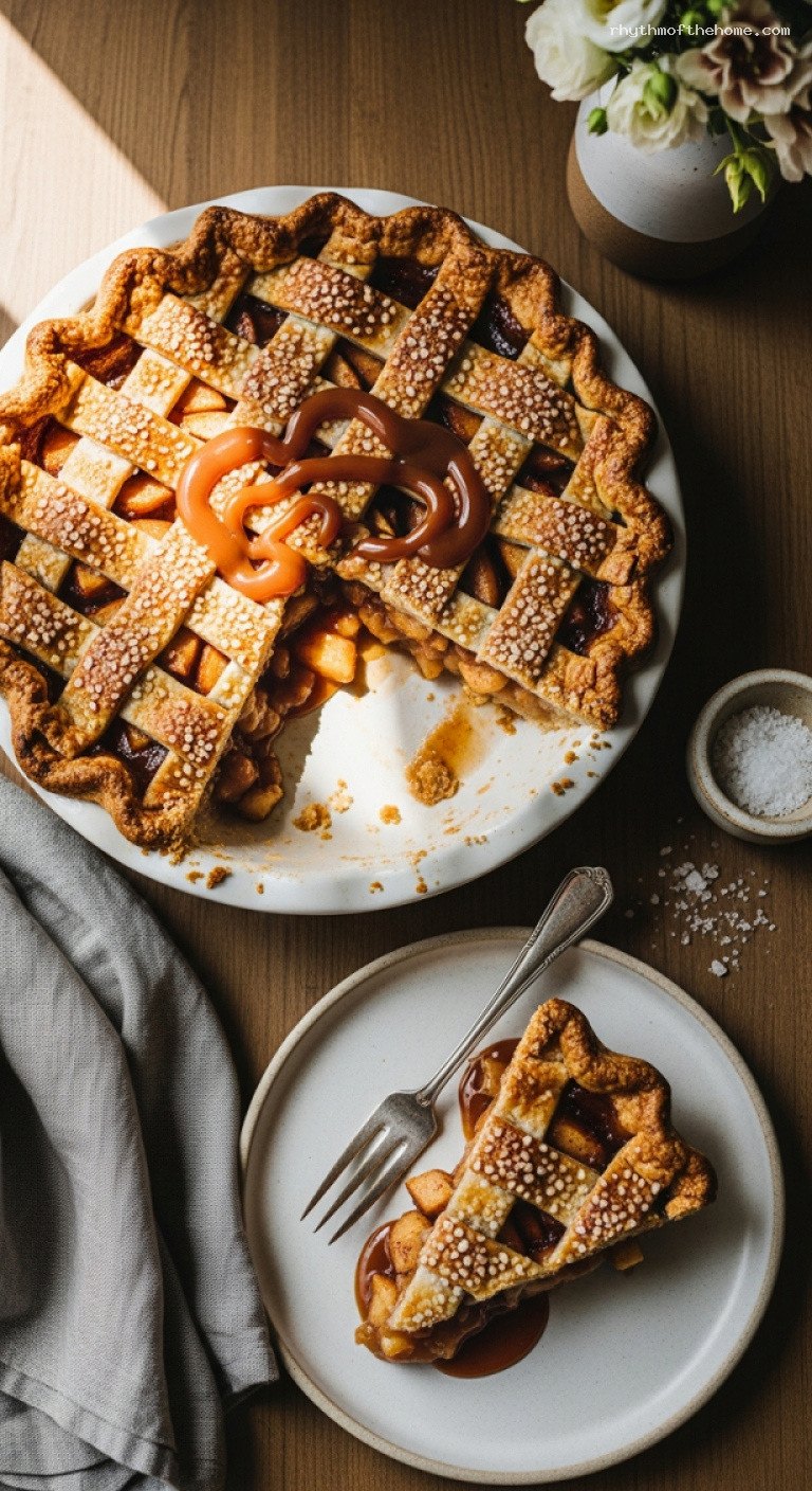- Salted caramel apple pie: Increase the salt in the caramel to 1/2–3/4 tsp, sprinkle a pinch of flaky sea salt over each slice just before serving, and drizzle extra caramel.