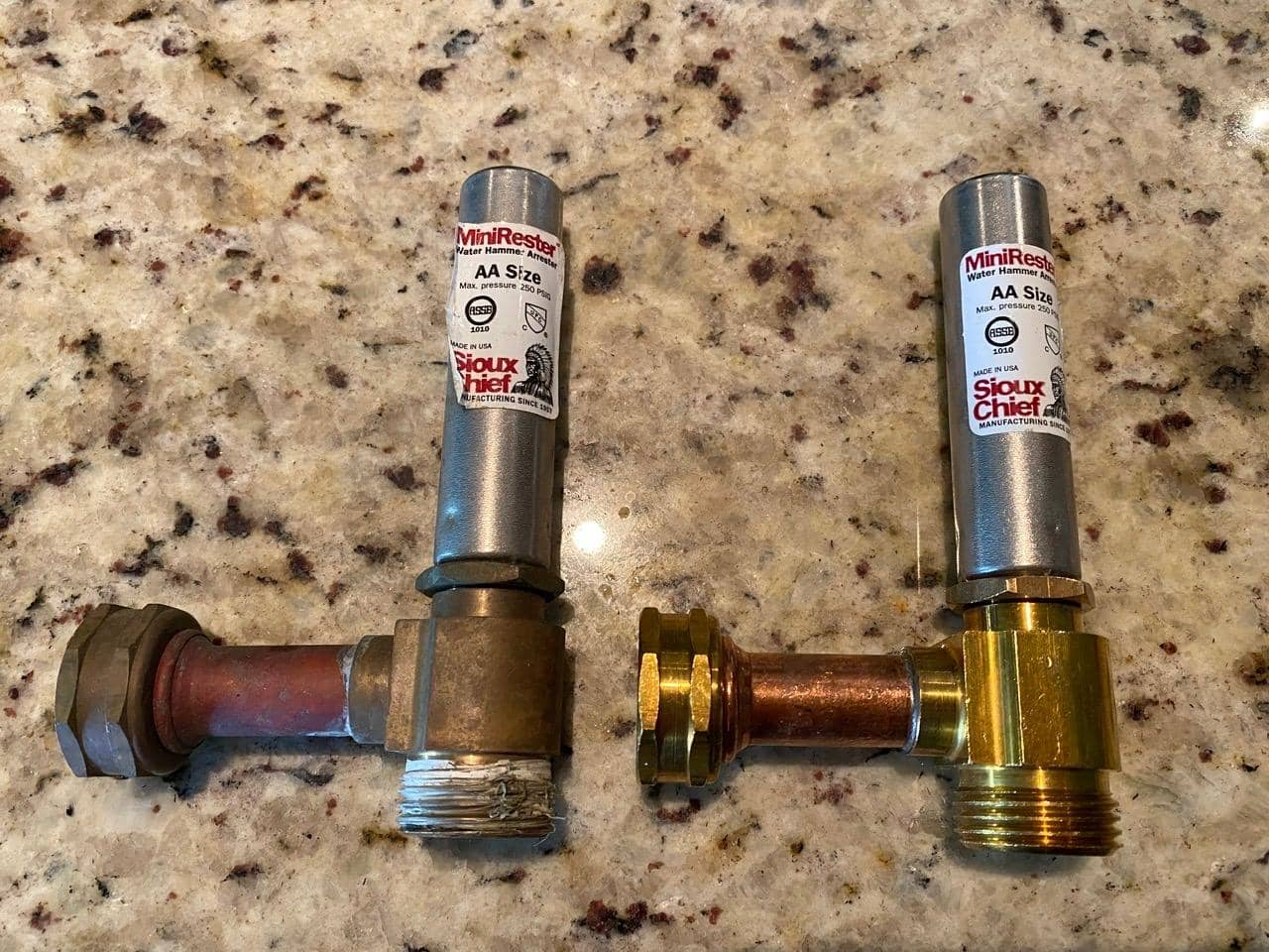 Water arrestors can be considered a good alternative for air chambers in a plumbing system. Their cylinders filled with air will manage the intense pressure causing the water hammer effect. The best part is that water arrestors are not particularly difficult to install by DIYers. Just make sure you install two of them to handle both cold and hot pipelines. Try using this high-quality water arrestor.
