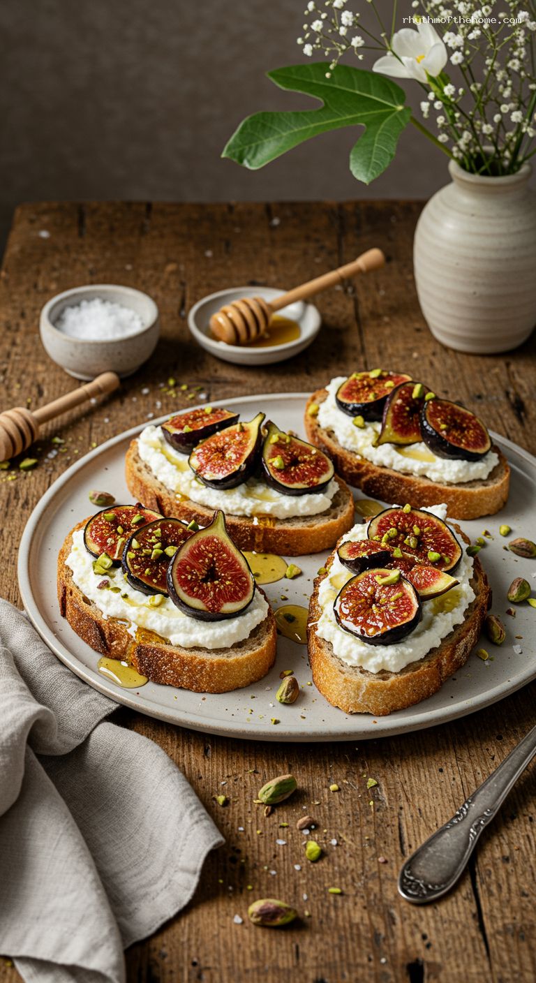 - Layers of texture: crisp, thick-cut toast, cloud-like ricotta, jammy roasted figs, and crunchy pistachios.