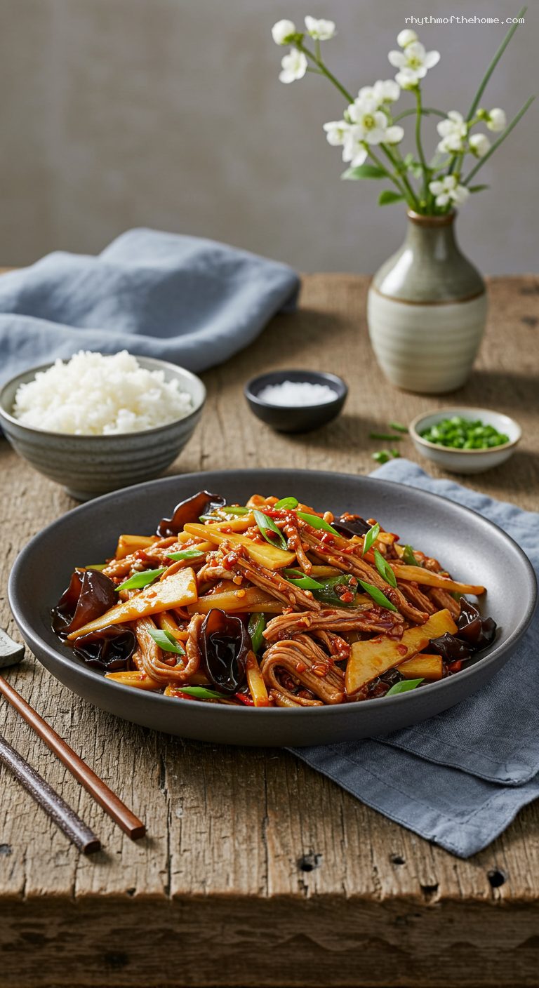 Prep ahead: Slice and marinate pork up to 12 hours in the fridge. Soak and slice wood ear up to 2 days ahead (refrigerate, well-drained). Mix the sauce up to 24 hours ahead and stir before using. Leftovers keep 3 days refrigerated in an airtight container; reheat gently in a skillet over medium heat with 1–2 tbsp water to loosen the sauce. Freezing is not recommended, as the sauce can separate and the vegetables lose their texture.